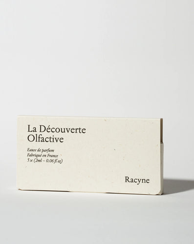 Racyne е млада френска нишова марка, вдъхновена от природата и идеята за „бавна парфюмерия“. Ароматите ѝ са веган, съставени основно от натурални съставки и са полово неутрални. Марката залага на минимализъм, чистота и съзнателна употреба на парфюма като личен ритуал — момент на спокойствие и връзка със себе си. Дизайнът е изчистен и елегантен, отразяващ естествената красота на продукта.